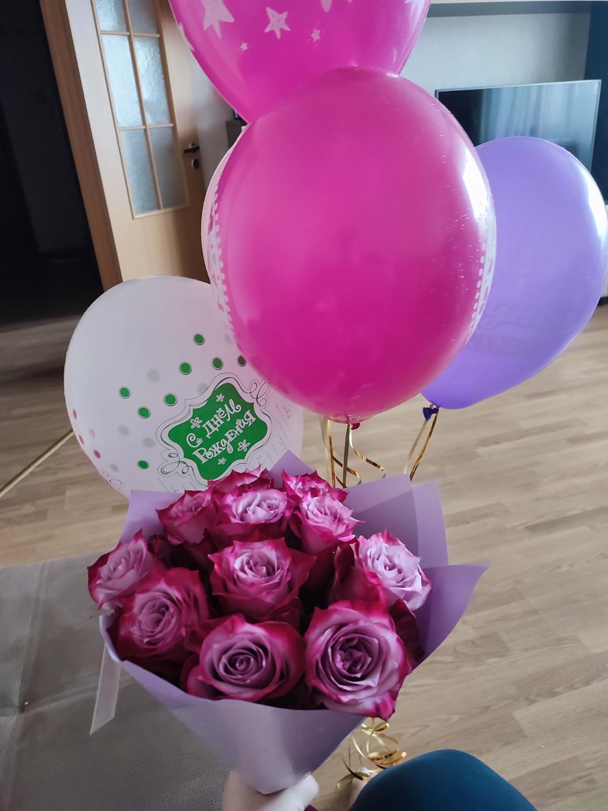 Большое спасибо за доставку заказа. Букет красивый, шарики, конфеты- всё замечательно. Доставили вовремя, цена спокойная. Буду ещё пользоваться!